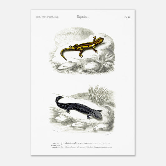 Ilustración del mundo natural, perfecta para enriquecer un espacio con acentos naturales: Salamandra moteada de Charles d'Orbigny