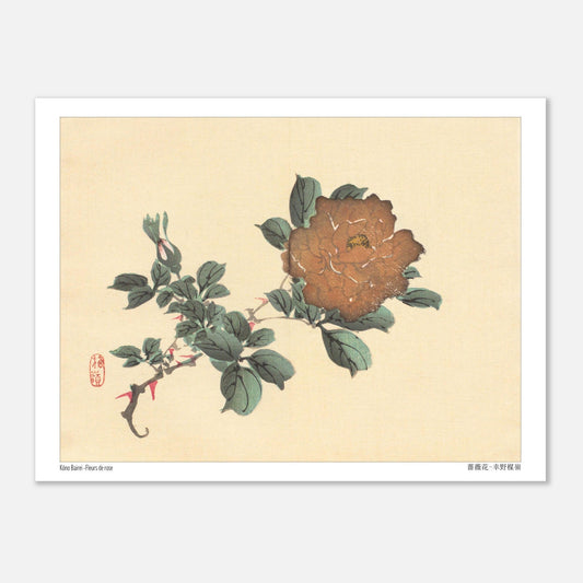 "Rose Blossoms" (título original: 薔薇花) es un grabado del pintor e ilustrador japonés Kōno Bairei (1844-1895).