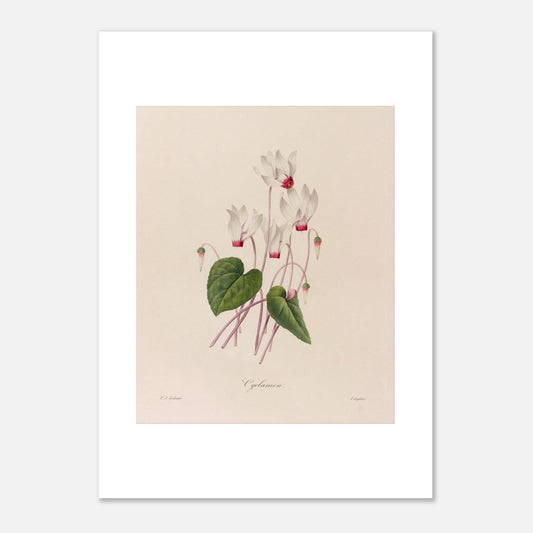 Ciclamen es un grabado que realza la sutil belleza de esta planta con sus delicadas flores y hojas acorazonadas. Pierre-Joseph Redouté, famoso ilustrador botánico del siglo XVIII, retrata con precisión la gracia y la delicadeza del ciclamen a través de sus grabados.