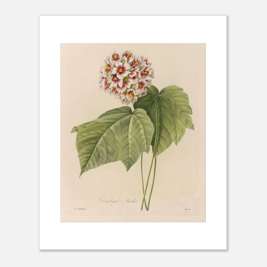 Dombeya Ameliæ es una ilustración que captura la magnificencia de esta planta con sus elegantes flores y exuberantes hojas. Pierre-Joseph Redouté, el famoso ilustrador botánico del siglo XVIII, demuestra su talento para representar la diversidad de la flora con gran precisión.