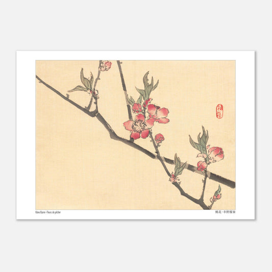 "Flores de durazno" (título original: 桃花) es una xilografía del pintor e ilustrador japonés Kōno Bairei (1844-1895).