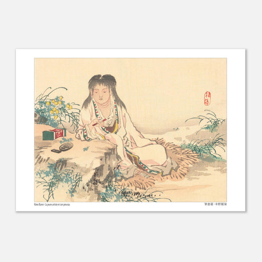 Impresión de naturaleza japonesa que representa la delicada belleza de la naturaleza japonesa: La joven artista y su pincel de Kōno Bairei