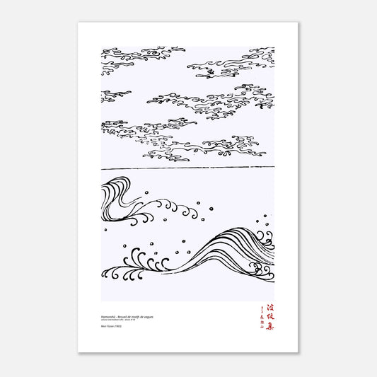 Sumérgete en la elegancia atemporal del arte japonés con esta reproducción del motivo n.º 39 del volumen central (中) de Hamonshū , una colección icónica creada en 1903 por Mori Yūzan. El título original (波紋集), que literalmente significa "Colección de motivos de olas", esta colección resalta un tema universal: el movimiento fluido y armonioso del agua y las formas que lo evocan. Diseñada para guiar a los artesanos en la ornamentación de sus creaciones, Hamonshū reúne una variedad de motivos, que van desde ondulaciones abstractas hasta composiciones más figurativas, a veces cercanas al paisaje, siempre imbuidas de poesía y una maestría estética excepcional.