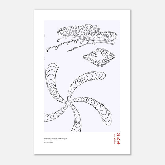 Sumérgete en la elegancia atemporal del arte japonés con esta reproducción del motivo n.º 40 del primer volumen (上) de Hamonshū , una colección icónica creada en 1903 por Mori Yūzan. El título original (波紋集), que literalmente significa "Colección de motivos de olas", esta colección resalta un tema universal: el movimiento fluido y armonioso del agua y las formas que lo evocan. Diseñada para guiar a los artesanos en la ornamentación de sus creaciones, Hamonshū reúne una variedad de motivos, que van desde ondulaciones abstractas hasta composiciones más figurativas, a veces cercanas al paisaje, siempre imbuidas de poesía y una maestría estética excepcional.