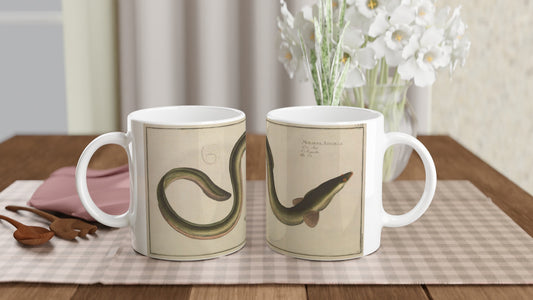 Disfruta de tu café o té en nuestra taza con temática de anguila. Este pez serpenteante, frecuente en ríos y estuarios, fascina con su apariencia única y misteriosa. Ideal para disfrutar de cada sorbo, esta taza celebra las maravillas acuáticas. ¡Un regalo perfecto para quienes aman explorar los misterios de la naturaleza y la biodiversidad!
