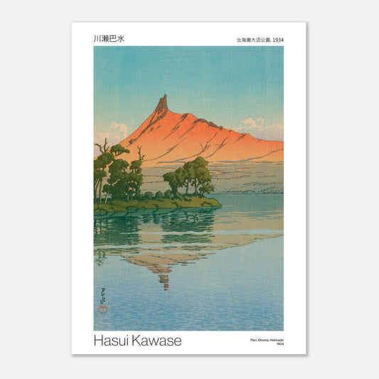 Reproducción de la estampa "Onuma Park, Hokkaido" realizada por Hasui Kawase en 1934 (título original: "北海道大沼公園"