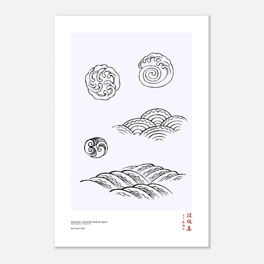 Póster japonés de una ola ondulante, del Hamonshū de Mori Yūzan