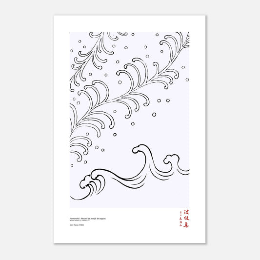 Sumérgete en la elegancia atemporal del arte japonés con esta reproducción del motivo n.º 13 del volumen final (下) de Hamonshū , una colección icónica creada en 1903 por Mori Yūzan. El título original (波紋集), que literalmente significa "Colección de motivos de olas", esta colección resalta un tema universal: el movimiento fluido y armonioso del agua y las formas que lo evocan. Diseñada para guiar a los artesanos en la ornamentación de sus creaciones, Hamonshū reúne una variedad de motivos, que van desde ondulaciones abstractas hasta composiciones más figurativas, a veces cercanas al paisaje, siempre imbuidas de poesía y una maestría estética excepcional.