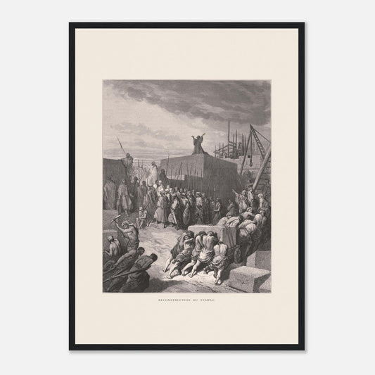 Este grabado encarna el talento de Doré para las escenas de renovación y esperanza , donde cada detalle refuerza la importancia de la restauración. La referencia bíblica, Esdras 3:1 , evoca perseverancia y fe en la reconstrucción.