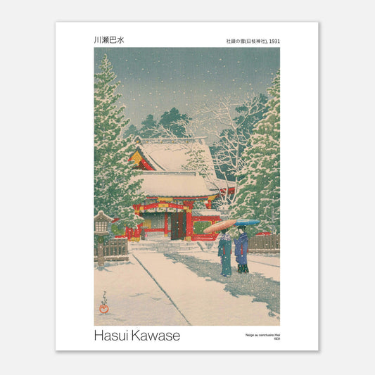 Reproducción del grabado "Nieve en el Santuario Hiei" de Hasui Kawase en 1931 (título original: "社頭の雪(日枝神社)"