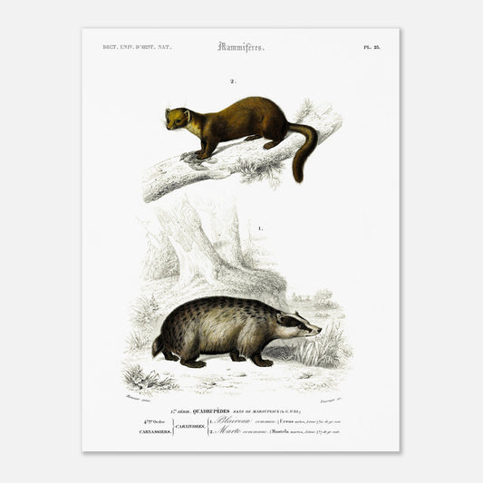 Reproducción de imagen enciclopédica, un toque de curiosidad y naturalidad para tu decoración - Tejón común de Charles d'Orbigny