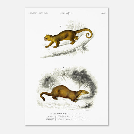 Reproducción de imagen enciclopédica, un toque de curiosidad y naturalidad para su decoración - Kinkajou, Nutria de Charles d'Orbigny