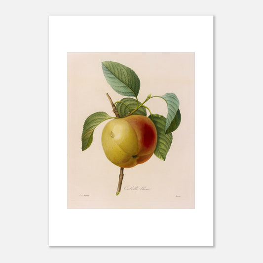 Calville Blanc es una ilustración detallada de esta variedad de manzana, que resalta su distintiva forma y su color claro. Pierre-Joseph Redouté, el renombrado ilustrador botánico del siglo XVIII, demuestra su habilidad para capturar las características únicas de la fruta a través de sus grabados.