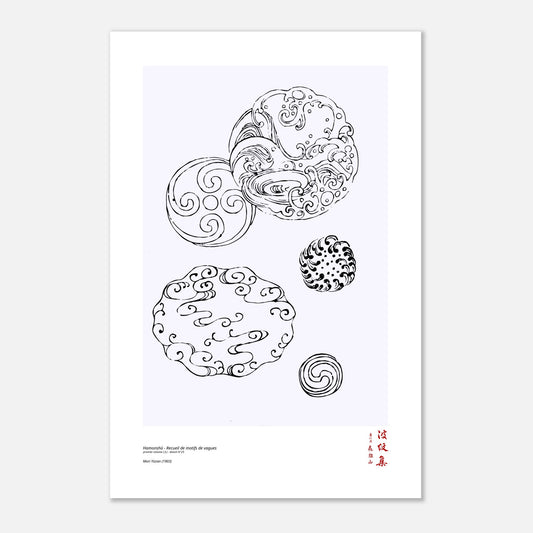 Esplora la ricchezza dell'arte giapponese con questa riproduzione del disegno n. 25 del primo volume (上) degli Hamonshū , una collezione di riferimento creata nel 1903 da Mori Yūzan. Il titolo originale (波紋集), che letteralmente significa "Collezione di motivi a onde", celebra l'eleganza di forme fluide e armoniose ispirate all'acqua. Pensata per gli artigiani, questa collezione riunisce una varietà di motivi, dalle increspature astratte alle composizioni che evocano paesaggi, esprimendo sempre poesia visiva e un acuto senso di equilibrio estetico.