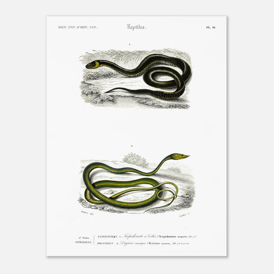 Riproduzione incisa di: Dryine nasica (Dryinus nasutus, Bib.), Tropidonotus torquatus (Tropidonotus torquatus, Bib.)
