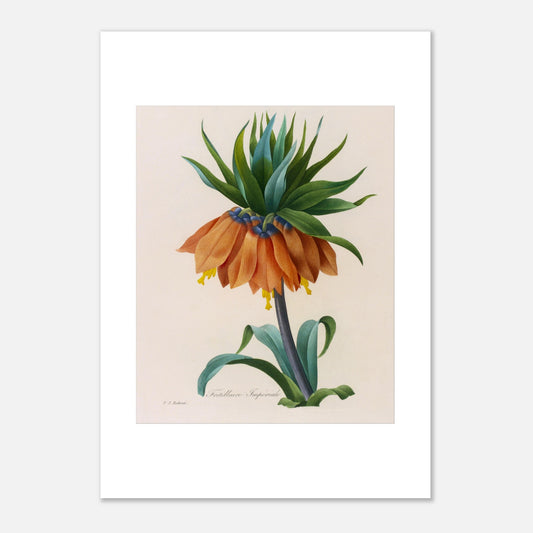 La Fritillaria imperiale è una straordinaria rappresentazione di questo maestoso fiore, che ne esalta i colori vivaci e la forma elegante. Pierre-Joseph Redouté, il rinomato illustratore botanico del XVIII secolo, dimostra il suo talento nel catturare lo splendore e la vivacità dei fiori attraverso le sue incisioni.