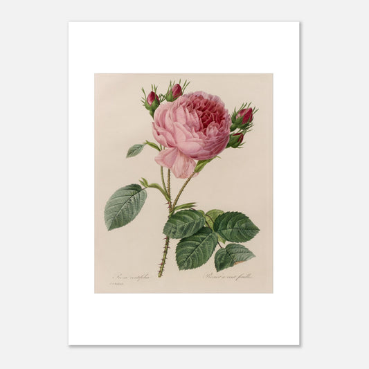 Poster naturalista vintage Rosa Centifolia di Pierre-Joseph Redouté