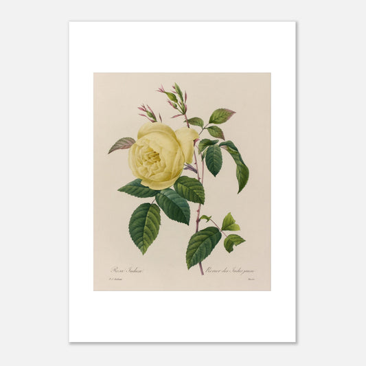 Poster naturalista vintage Yellow Indian Rose di Pierre-Joseph Redouté