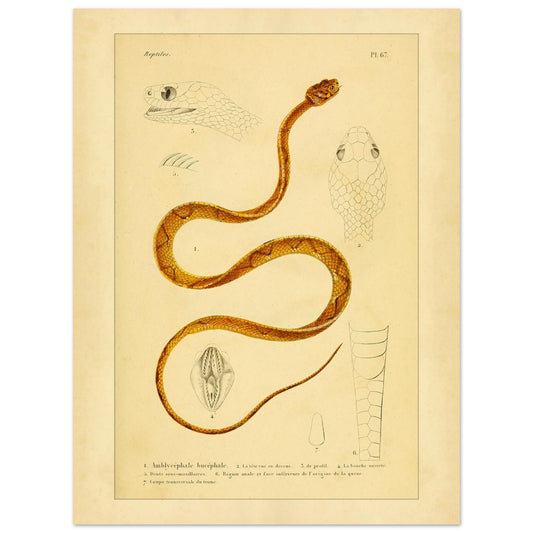 Destinée aux passionnés d’herpétologie et aux amateurs d’esthétique scientifique, cette affiche trouve naturellement sa place dans un cabinet de curiosités ou une décoration au style classique. Elle permet d’observer minutieusement les détails d’une espèce appartenant à la famille des Leptognathiens tout en apportant une dimension historique à un espace de vie ou de travail.