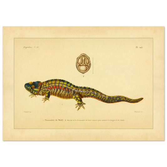 Planche anatomique : Pleurodèle de Waltl et Salamandre de Corse, reproduction scientifique