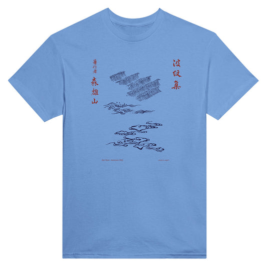 Abbraccia l'eleganza senza tempo dell'arte giapponese con questa t-shirt con un'illustrazione del modello n. 31 del volume intermedio (中) Hamonshū , un'iconica collezione creata nel 1903 da Mori Yūzan. Il titolo originale (波紋集), che letteralmente significa "Collezione di motivi a onde", evidenzia un tema universale: il movimento fluido e armonioso dell'acqua e le forme che evoca. Originariamente concepito come fonte di ispirazione per gli artigiani, Hamonshū riunisce una varietà di motivi, che spaziano da increspature astratte a composizioni figurative, a volte vicine al paesaggio, sempre intrise di poesia e di un'estetica raffinata.