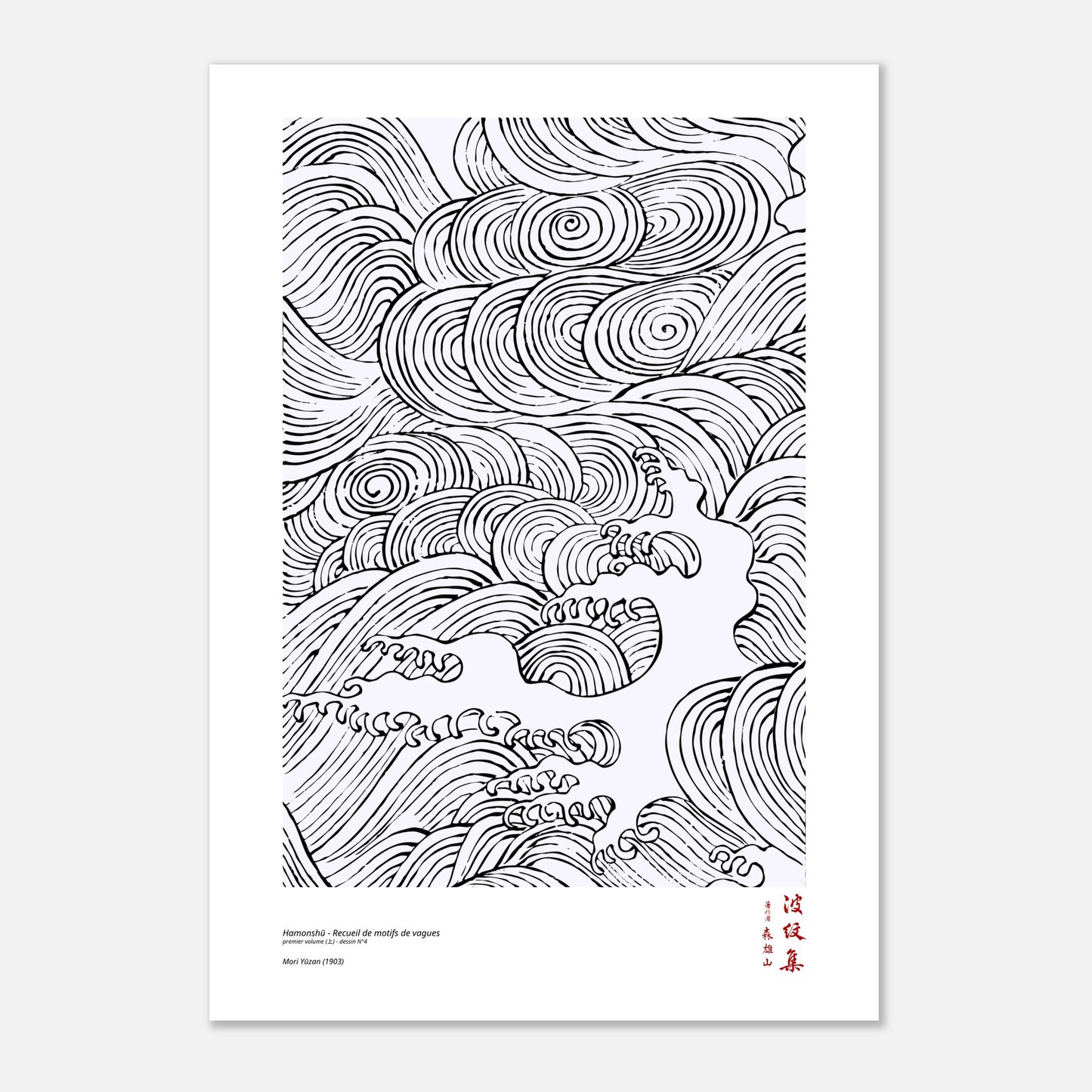 Sublimez votre intérieur avec cette reproduction du dessin N°4 tirée du premier volume (上) du Hamonshū, un recueil iconique réalisé en 1903 par Mori Yūzan. Intitulé en japonais (波紋集), « Recueil de motifs de vagues », cet ouvrage met en lumière un thème central : le mouvement fluide et harmonieux des formes inspirées de l’eau. Guidant les artisans dans leur quête d’ornementation, cet ouvrage propose une collection de motifs uniques, mêlant abstraction, évocations paysagères et compositions poétiques.