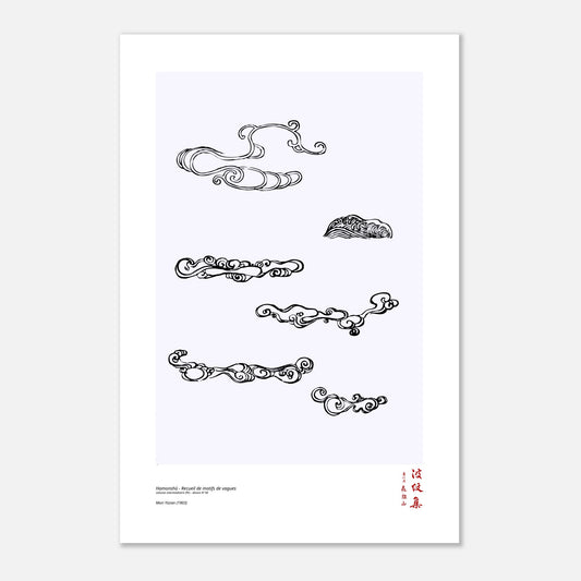 Faites entrer la poésie de l’art japonais dans votre espace avec cette reproduction du motif N°30 tirée du volume intermédiaire (中) du Hamonshū, le célèbre recueil de motifs réalisé en 1903 par Mori Yūzan. Le titre (波紋集), qui peut être traduit par « Recueil de motifs de vagues », met en avant un thème universel : la fluidité et l’harmonie des formes inspirées de l’eau. Destiné à guider les artisans, ce recueil regorge de compositions variées, allant de vagues abstraites à des paysages stylisés, toujours empreintes de sensibilité et de raffinement.