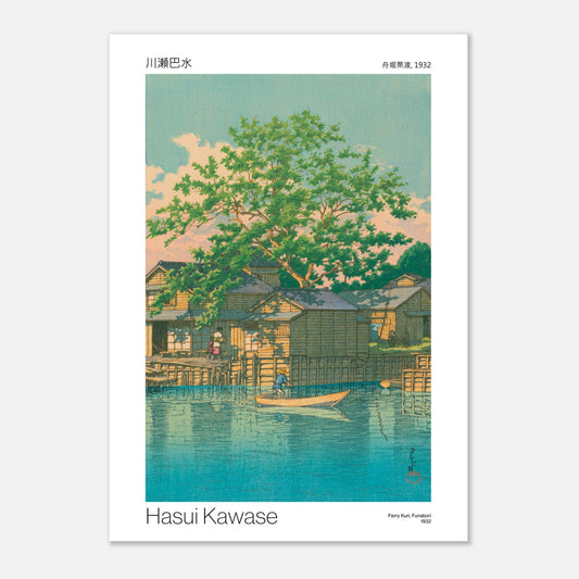 Affiche artistique japonaise illustrant la beauté paisible et raffinée du japon - Ferry Kuri, Funabori par Hasui Kawase