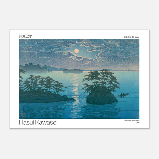 Affiche artistique japonaise inspiré par l'esthétique épurée et intemporelle du japon - Îles Futago, Matsushima par Hasui Kawase