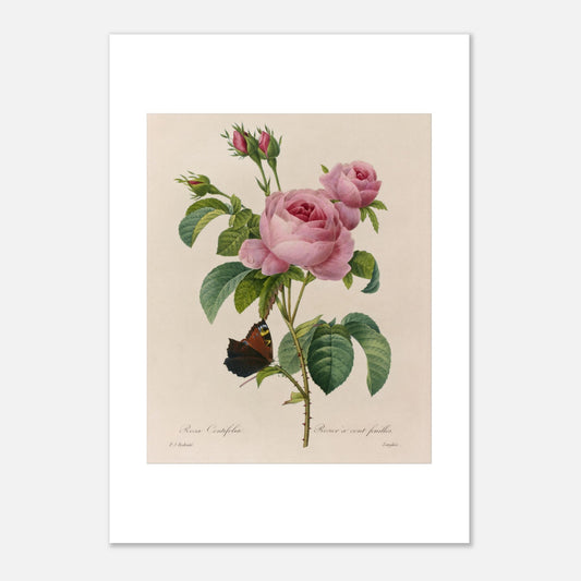 Affiche botanique ancienne Rosa Centifolia par Pierre-Joseph Redouté