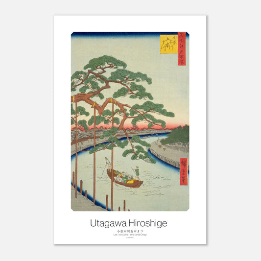Affiche d'art japonais Dans la tradition des grands maîtres ukiyo-e du XIXe siècle - Les « cinq pins » et le canal Onagi de Hiroshige
