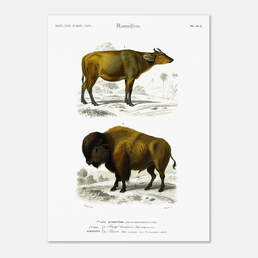 Affiche imprimée de collection, idéale pour une décoration élégante et naturelle - Boeuf brachycère, Bison par Charles d'Orbigny