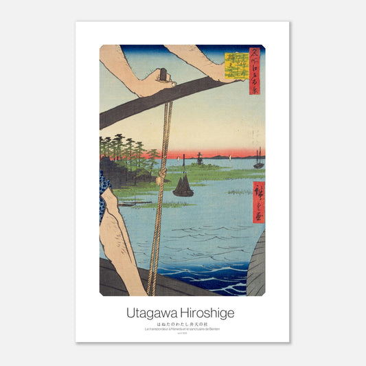 Affiche japonaise Illustrant la beauté paisible et raffinée de la nature japonaise - Le transbordeur à Haneda et le sanctuaire de Benten de Hiroshige