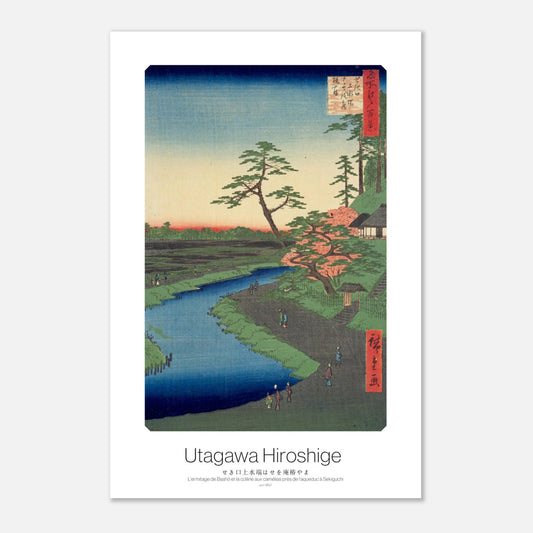 Affiche japonaise Immortalisant la beauté fragile de la nature japonaise - L’ermitage de Bashō et la colline aux camélias de Hiroshige