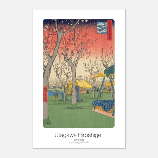 Affiche japonaise Rendant hommage à l'éphémérité de la nature japonaise - Le verger de pruniers à Kamada de Hiroshige