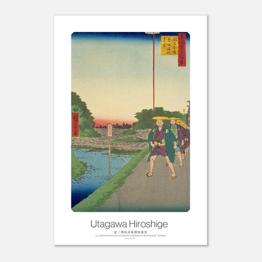 Affiche ukiyo-e D'un réalisme saisissant, fidèle aux paysages naturels du Japon - La colline Kinokuni et vue distante d'Akasaka de Hiroshige
