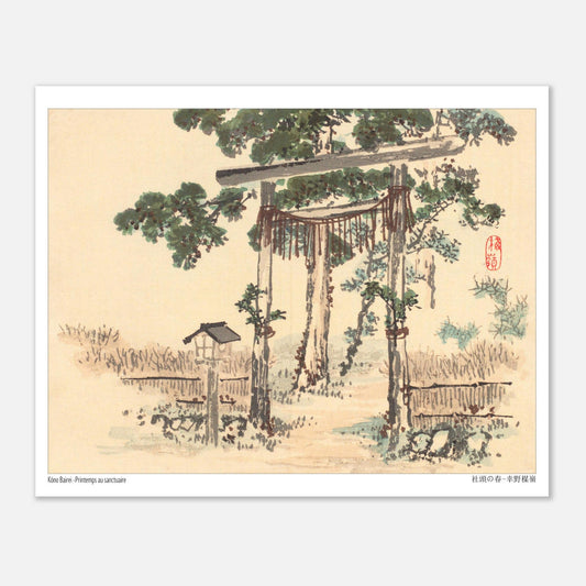 Art inspiré du Japon capturant l'essence de la culture nippone - Printemps au sanctuaire de Kōno Bairei