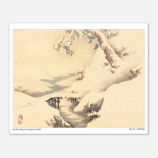 « Neige sur les montagnes et les vallées » (titre original: 溪山雪) est une estampe du peintre et illustrateur japonais Kōno Bairei (1844-1895).