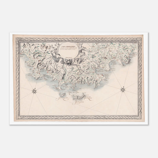Reproduction d'une carte issue du Recueil des cartes des costes maritimes du Royaume publié en 1680, réalisé par Louis-Nicolas de Clerville (1610-1677) et commandité par Jean-Baptiste Colbert (1619-1683)