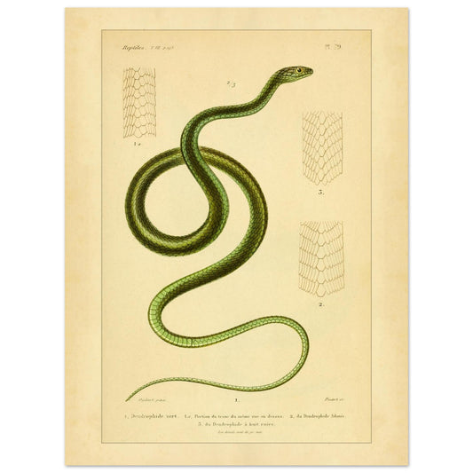 Cette planche sera appréciée par les amateurs de serpents, les étudiants en herpétologie et les collectionneurs d'illustrations naturalistes. Elle constitue un élément décoratif et éducatif pertinent pour tout espace dédié à la nature et à la science.