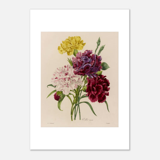 Dessin naturaliste illustré Oeillet Variété par Pierre-Joseph Redouté