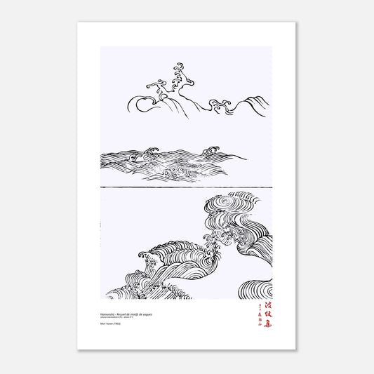 Découvrez l’art raffiné de l’époque japonaise moderne avec cette reproduction du dessin N°3 issue du volume intermédiaire (中) du Hamonshū, un recueil réalisé en 1903 par Mori Yūzan. Le titre original (波紋集), qui signifie « Recueil de motifs de vagues », célèbre la beauté universelle des formes ondulantes, inspirées de l’eau et du mouvement. Conçu pour inspirer les artisans japonais, cet ouvrage propose des compositions qui oscillent entre abstraction, évocations paysagères et motifs poétiques.