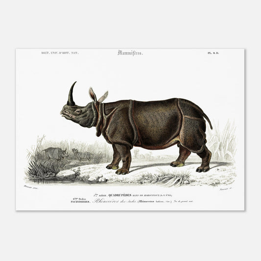 Estampe artistique sur la nature, parfaite pour enrichir un espace aux accents naturels - Rhinocéros des Indes par Charles d'Orbigny