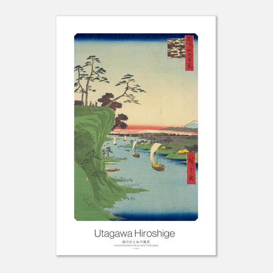 Estampe japonaise ancienne Exprimant l'harmonie entre l'art et la nature - Vue de Kōnodai et de la rivière Tone-gawa de Hiroshige