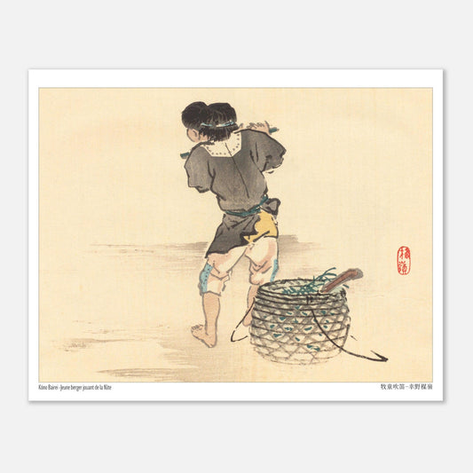 Estampe nature japonaise capturant l'essence de la culture nippone - Jeune berger jouant de la flûte de Kōno Bairei
