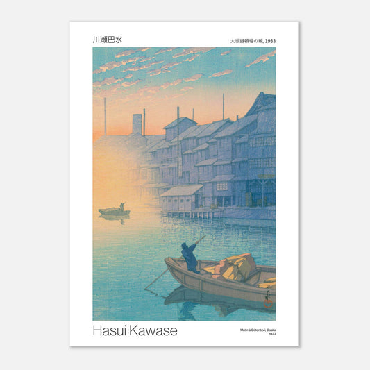 Estampe paysage reflétant la délicatesse des traditions artistiques japonaises - Matin à Dotonbori, Osaka par Hasui Kawase