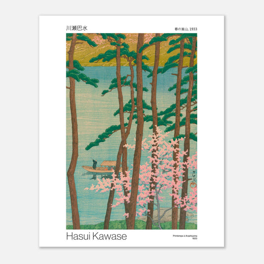 Reproduction de l'estampe «Printemps à Arashiyama» réalisée par Hasui Kawase en 1933 (titre original : «春の嵐山»