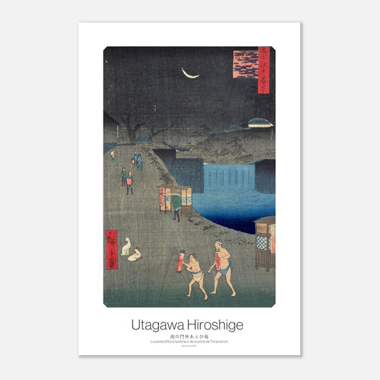 Estampe vintage japonaise Dans la tradition des grands maîtres ukiyo-e du XIXe siècle - La porte de Toranomon de Hiroshige