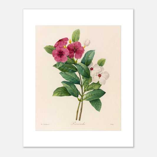 Cette jolie Pervenche est originaire de Madagascar, d’où ses graines ont été envoyées au Jardin-des-Plantes de Paris vers l’année 1757 . Depuis ce temps, elle est cultivée abondamment dans les jardins, et elle y a produit une variété blanche représentée dans cette planche.