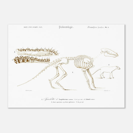 Gravure illustrée du XIXe siècle, idéale pour une atmosphère apaisante et érudite - Squelette d'Ânoplotherium commune par Charles d'Orbigny